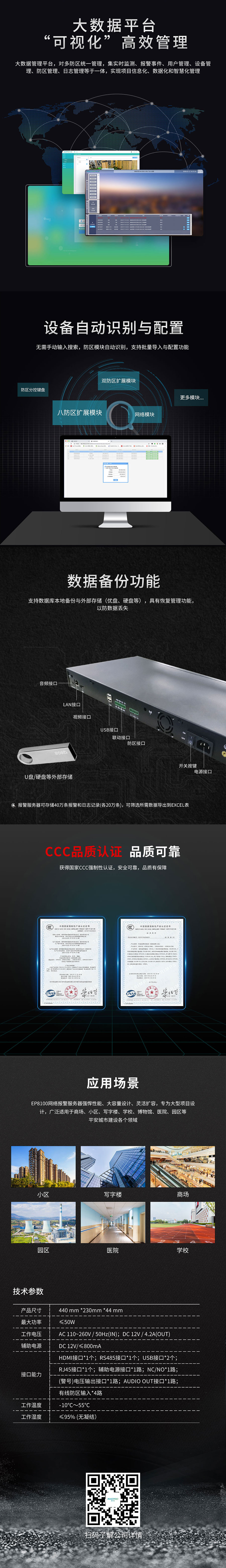 本次EP8100网络报警服务器从系统容量、管理方式、智能联动、通信方式、操作系统等软硬件全面优化升级,只为您提供更好的项目管理体验。